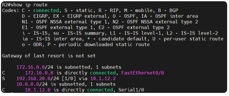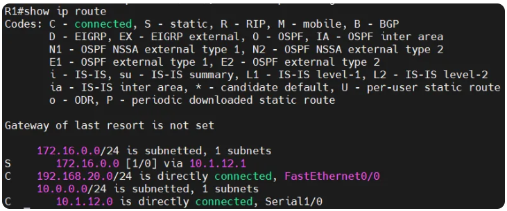 ip route 172.16.0.0 255.255.255.0 10.1.12.1