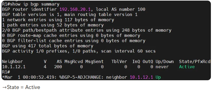 neighbor 10.1.12.1 remote-as 200 ! R2와 피어링