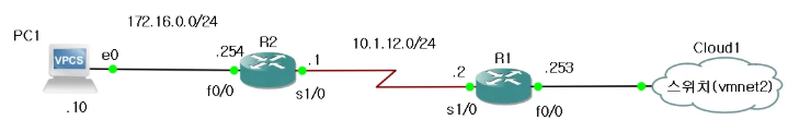 ! → 기본 게이트웨이: 172.16.0.254 (R2의 인터페이스 IP)