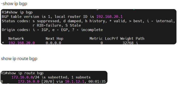 network 192.168.20.0 mask 255.255.255.0 ! 네트워크 광고