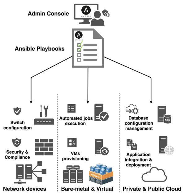 | 확장성 및 유연성 | 네트워크 자동화, 구성 관리, 애플리케이션 배포 등을 수행할 수 있으며, 다양한 OS, 클라우드 플랫폼, 네트워크 장치를 지원하는 모듈을 통해 전체 애플리케이션 라이프 사이클을 오케스트레이션할 수 있음. |